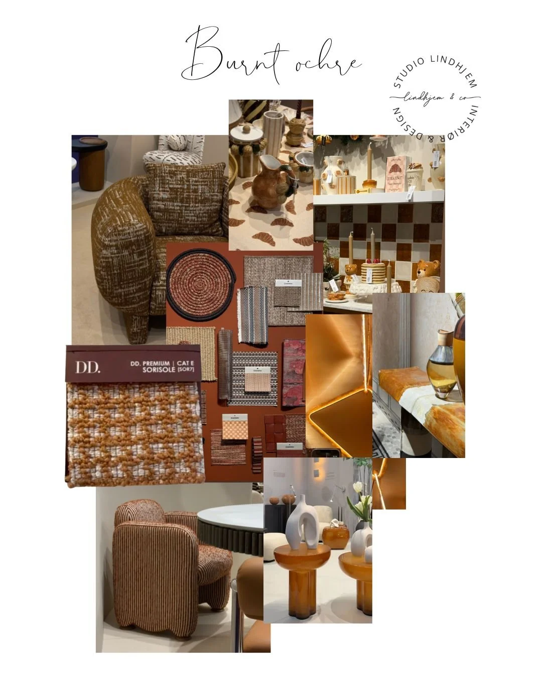 Brent oker. Det var små nyanser som går fra brunt til gult og rødt. Alle bildene er tatt på messen og viser sammenhengen mellom fargene fra de ulike merkene.
