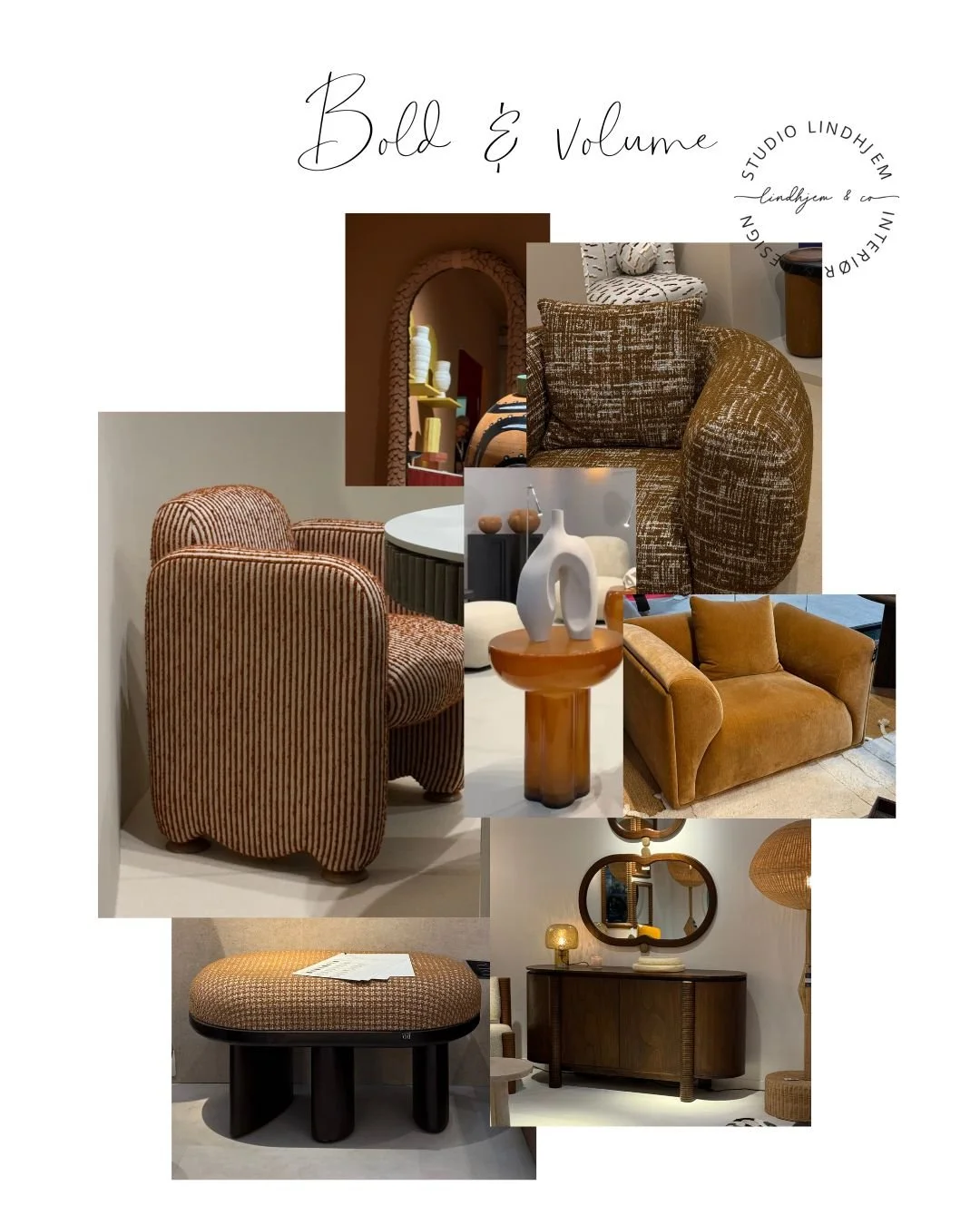 Mørkebrune detaljer og treverk. Det var minimalt med lys eik. Det var møbler i spennende former. Brunt i alle varianter, alt fra glass, tekstil til treverk i eik og flammebjørk. Sistnevnte spår jeg at vi vil se mer av i 2027.